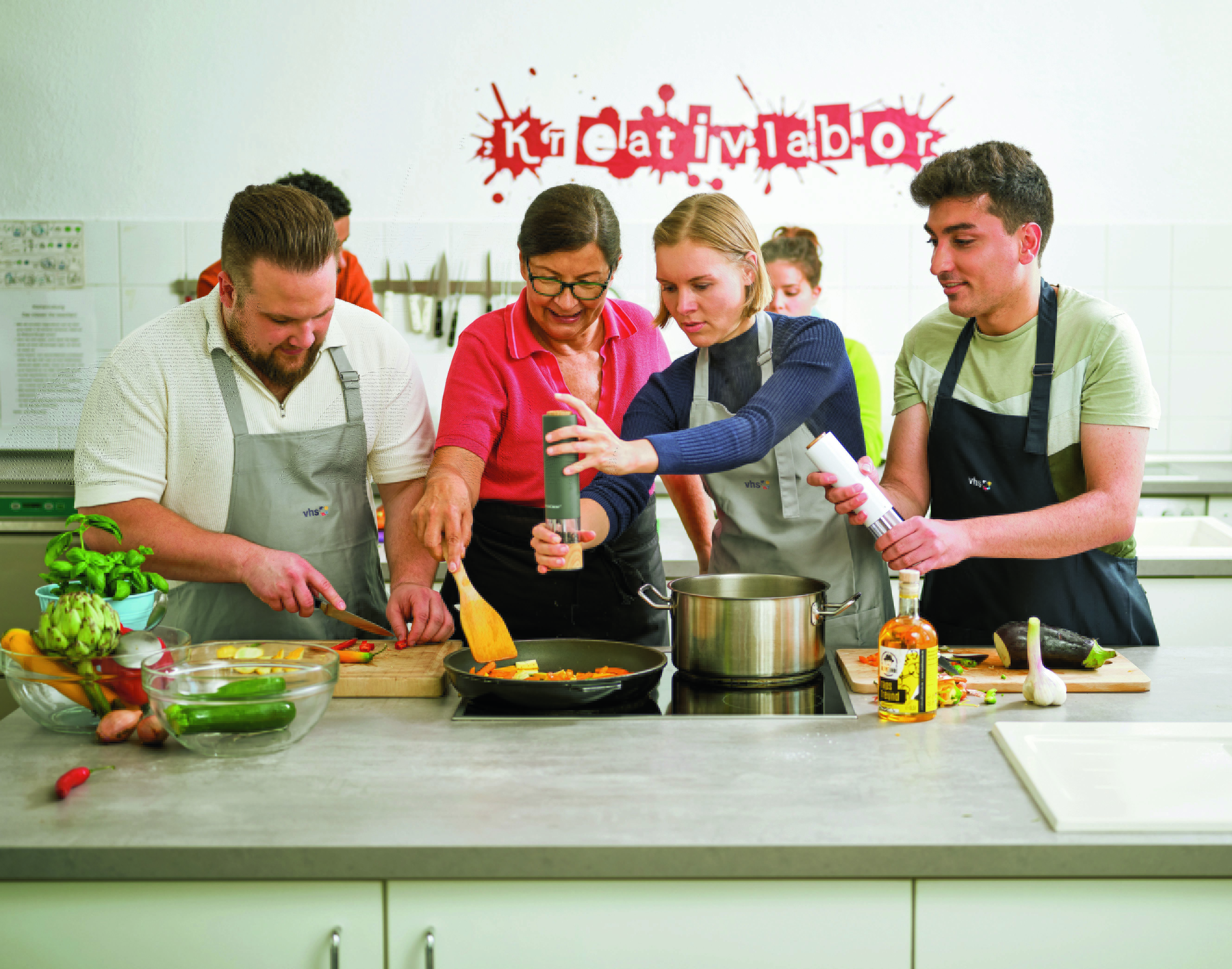 Kochschürzen und Kochutensilien werden Ihnen für den Abend zur Verfügung gestellt.